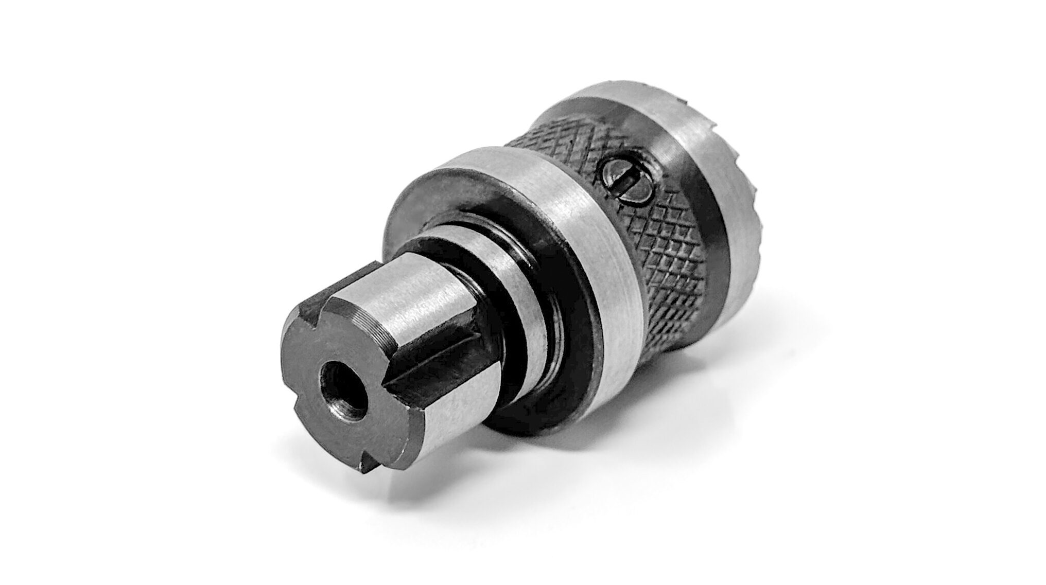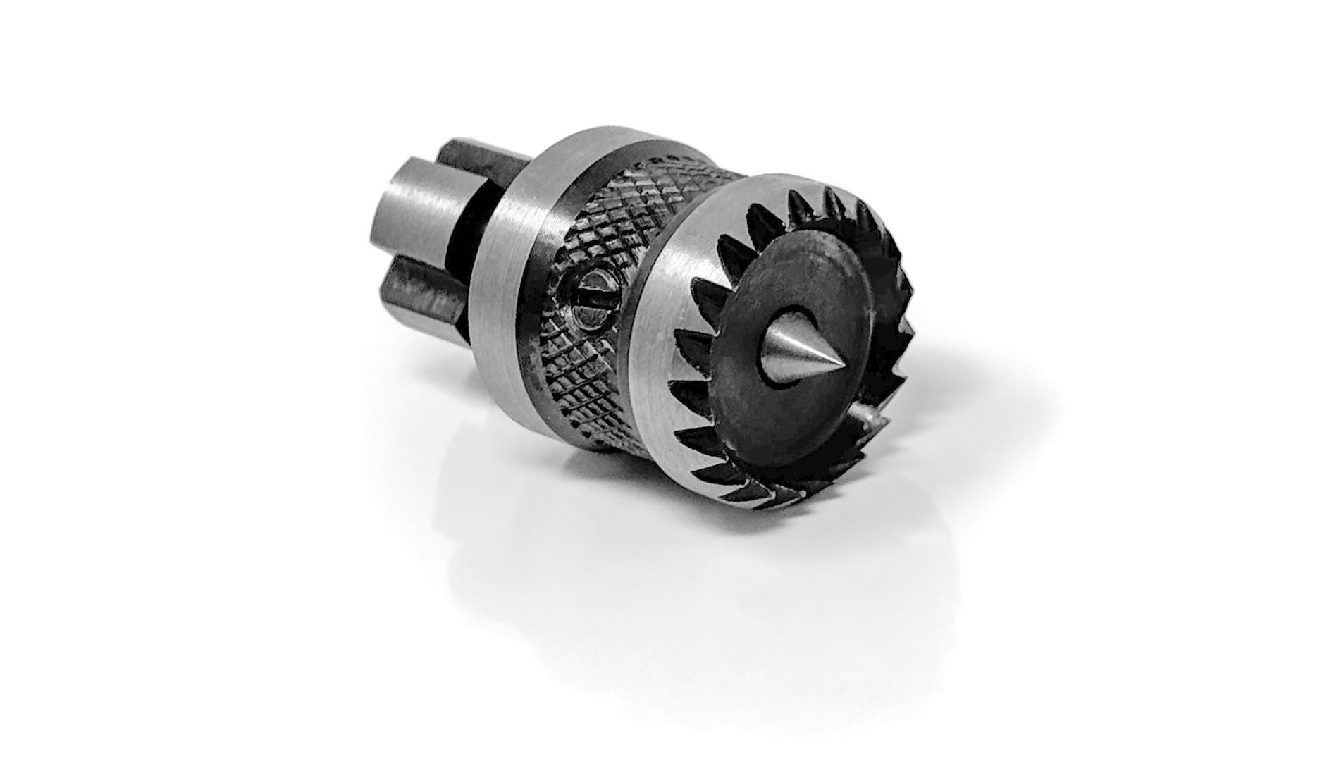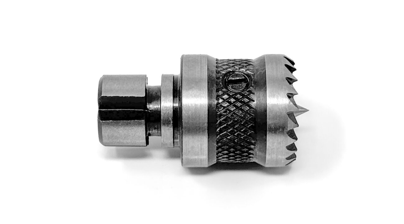 A lathe chuck spur, also called a “chuck center” or “drive center,” is a small, pointed piece that fits into the jaws of your woodlathe chuck, securely holding your work piece in preparation for turning. This is ideal particularly for spindle turning, and works by providing a central point of contact for the tailstock live center to push against. To use it a chuck spur, simply insert the spur into the chuck jaws, tighten the chuck, align the work-piece’s center with the spur, and then engage the tailstock live center to push against the workpiece and keep it stable while turning.